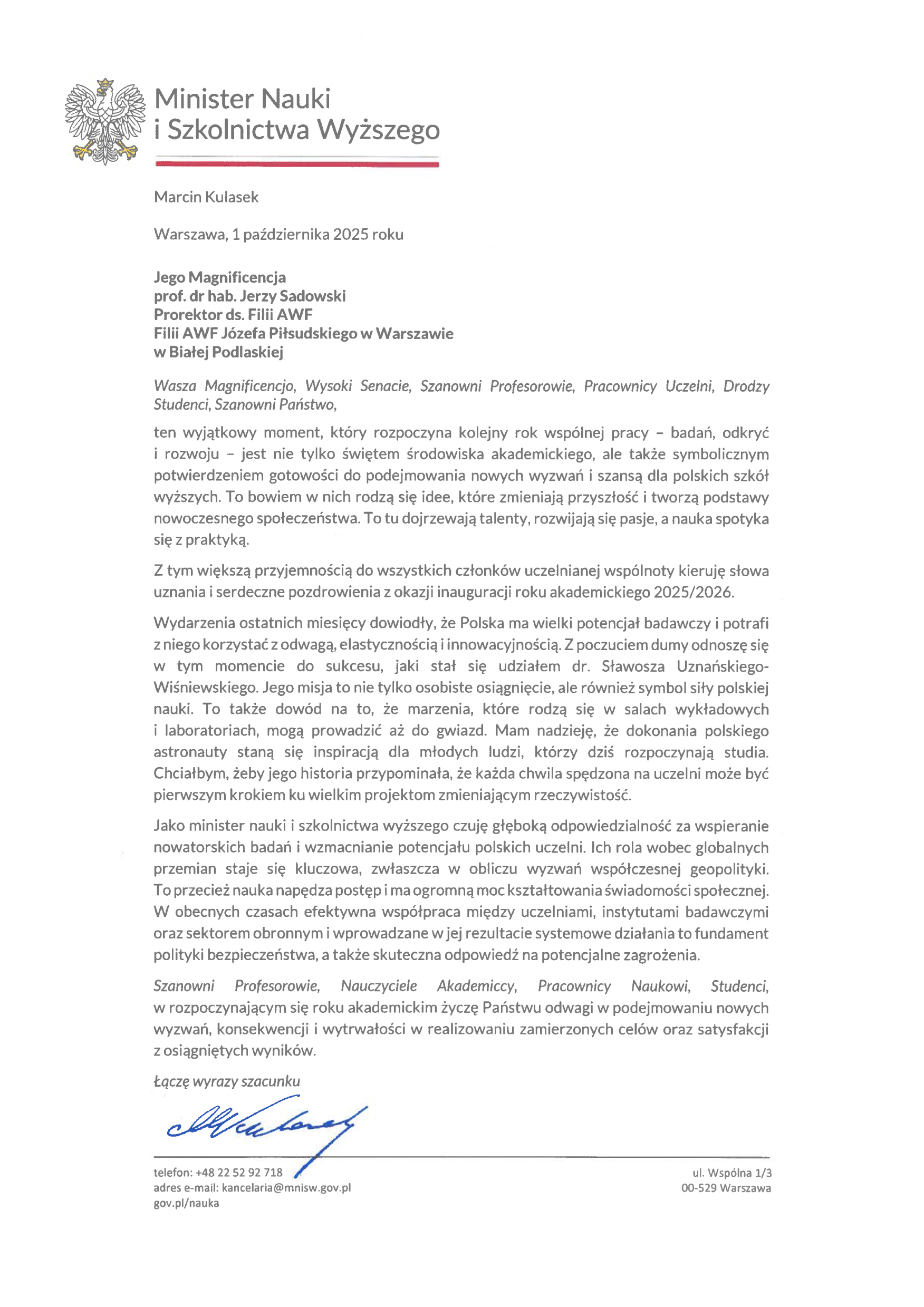 INAUGURACJI ROKU AKADEMICKIEGO 2025/2026